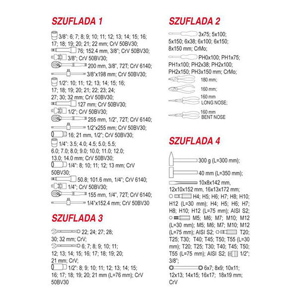 Eredeti megnevezés | ROLLER CABINET W.TOOLS 177PCS |